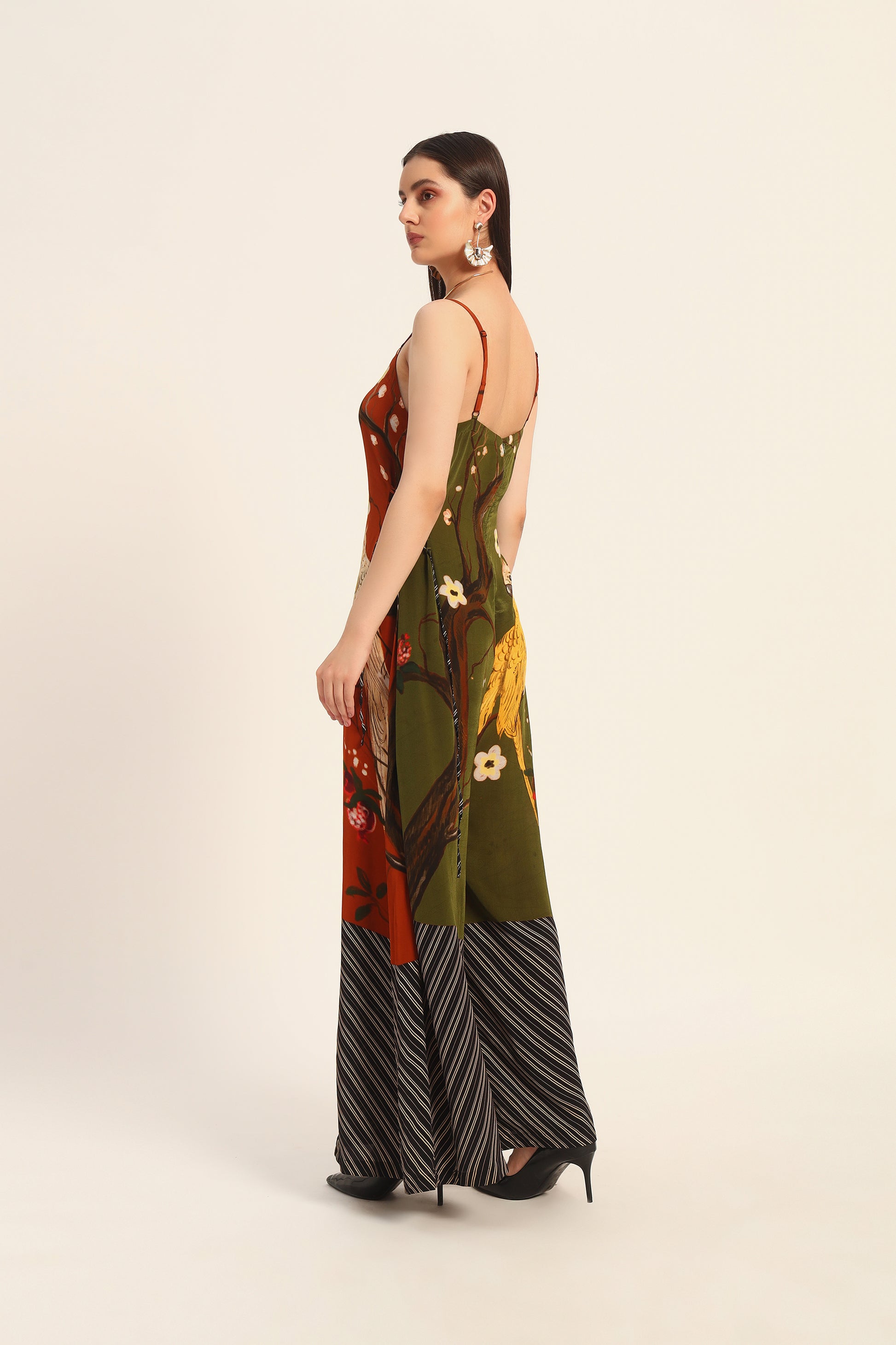 Introduce striking contrast and graceful storytelling to your wardrobe with this Dual-Colored Crepe Jumpsuit. Designed in soft crepe fabric and styled with drawstrings at both sides, the waist can be adjusted to flatter your figure while offering all-day comfort and movement. Ideal for layering or wearing solo.